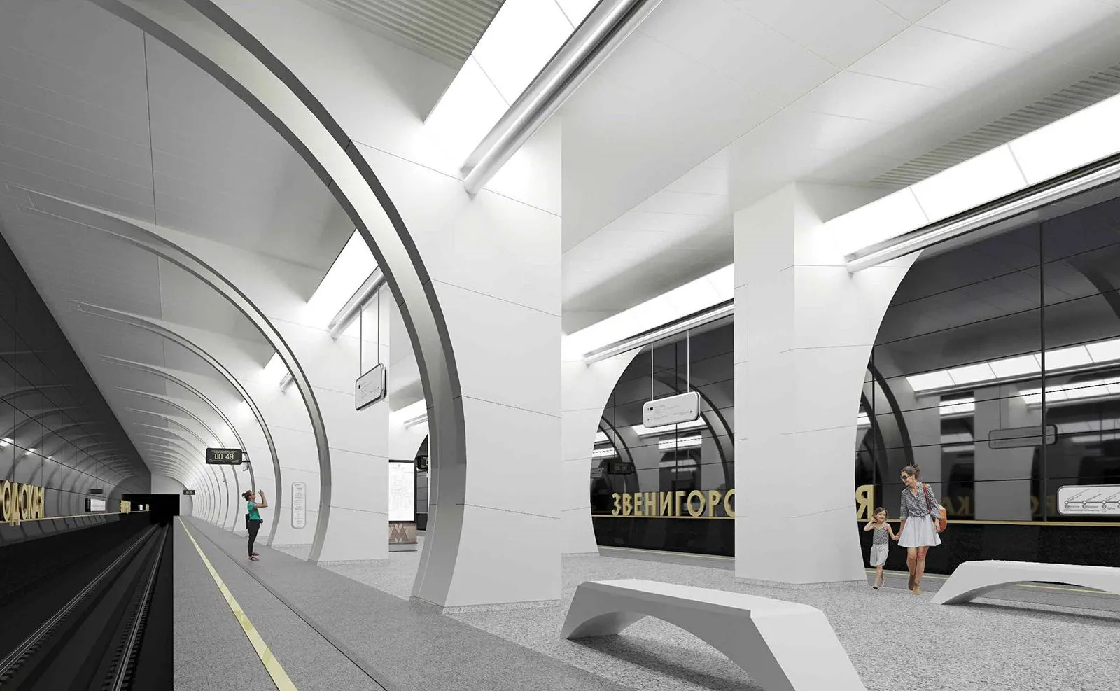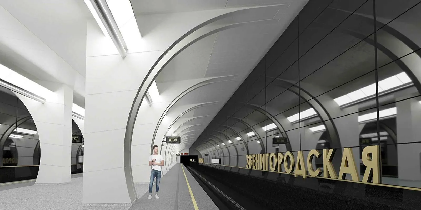 «Ее выполнят в монохромных цветах. Основная часть платформы будет светлой, а путевые стены - темными», - написал мэр.В центре станции разместят белые колонны. Они будут плавно переходить в своды над зоной ожидания поездов. Кроме того, установят светодиодные светильники с рассеивающим эффектом.