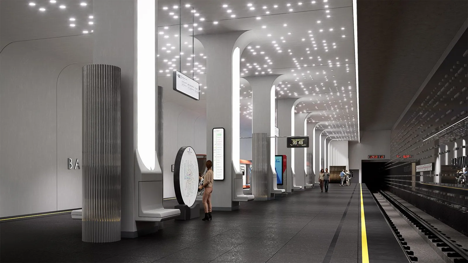 Стены вдоль платформы украсят зеркальные металлические элементы. Они не просто отражают свет, а мерцают при взгляде под определенным углом. Такой эффект будет виден только пассажирам, не мешая при этом работе машинистов.