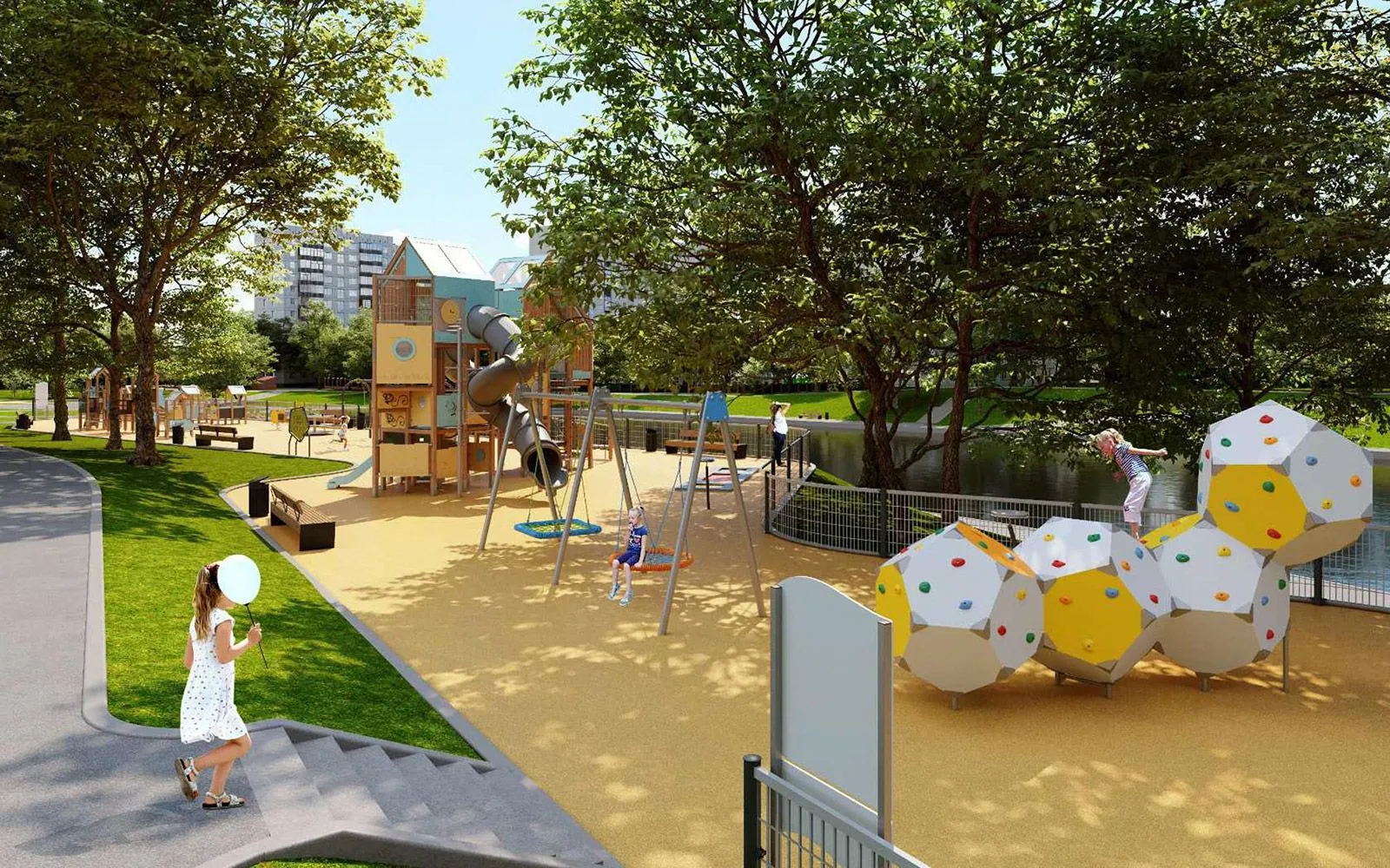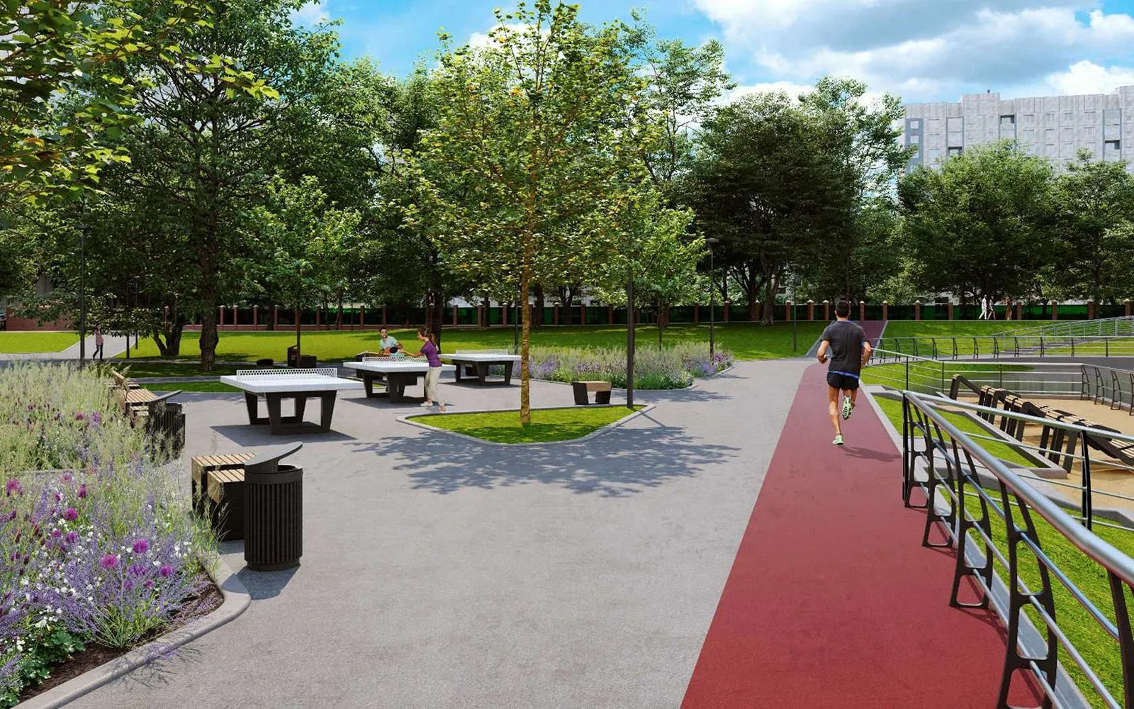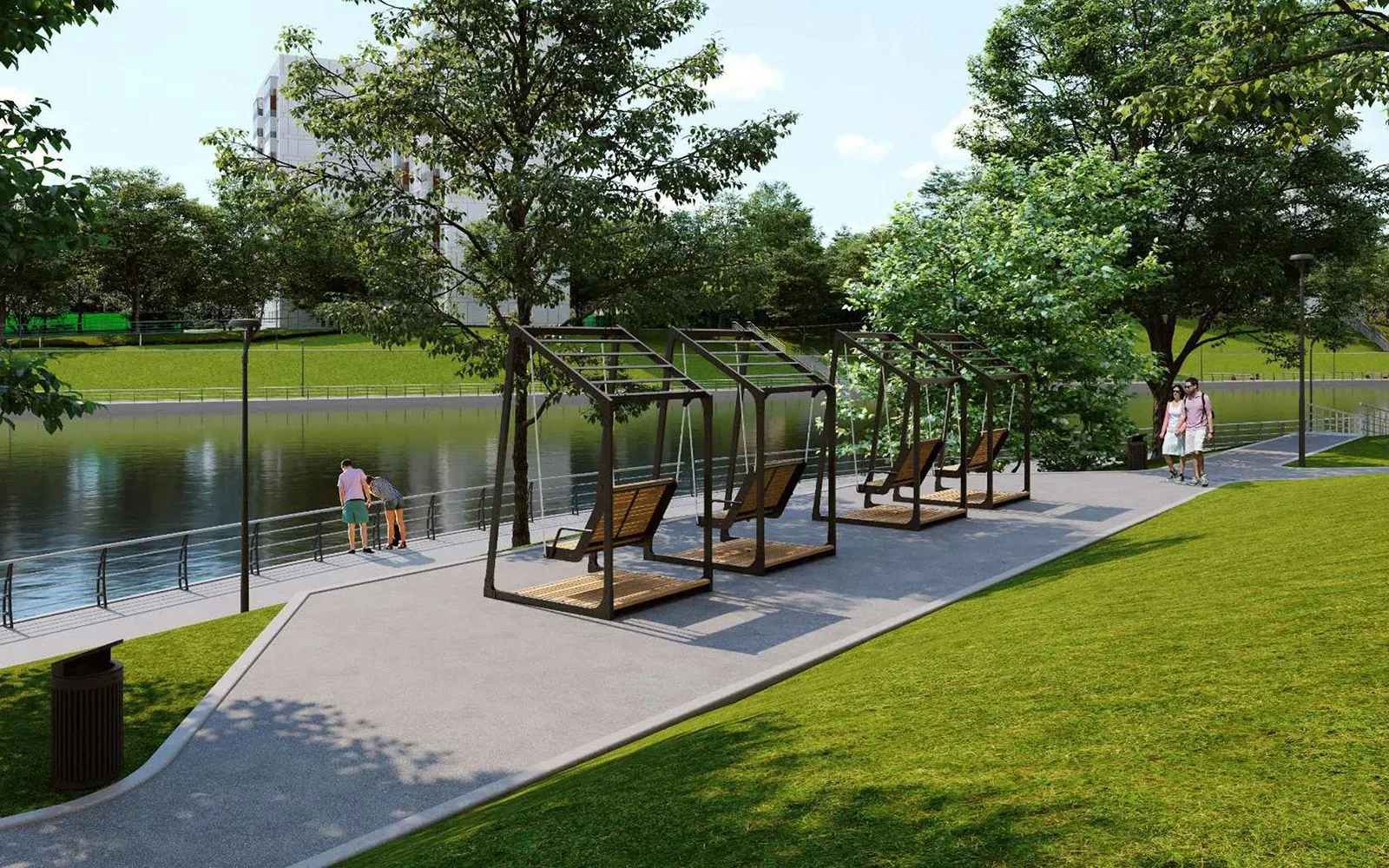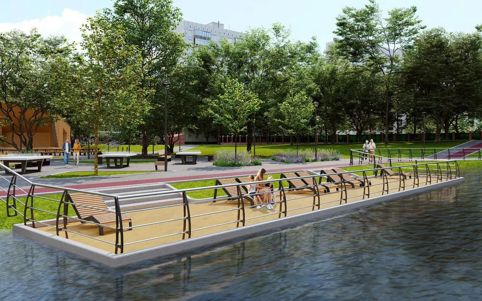 На территории у Беловежского пруда приведут в порядок пешеходные дорожки, установят парковые качели, шезлонги и лавочки для тихого отдыха. Юные жители района смогут играть на новых площадках в экостиле. На них установят несколько многосекционных игровых комплексов с горками и переходами, карусель, качели и батуты. В спортивной зоне появится гимнастический комплекс, уличные тренажеры и столы для пинг-понга. Кроме того, появится новая беговая дорожка.