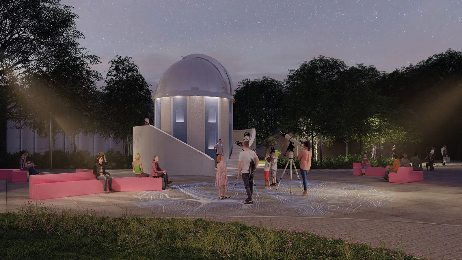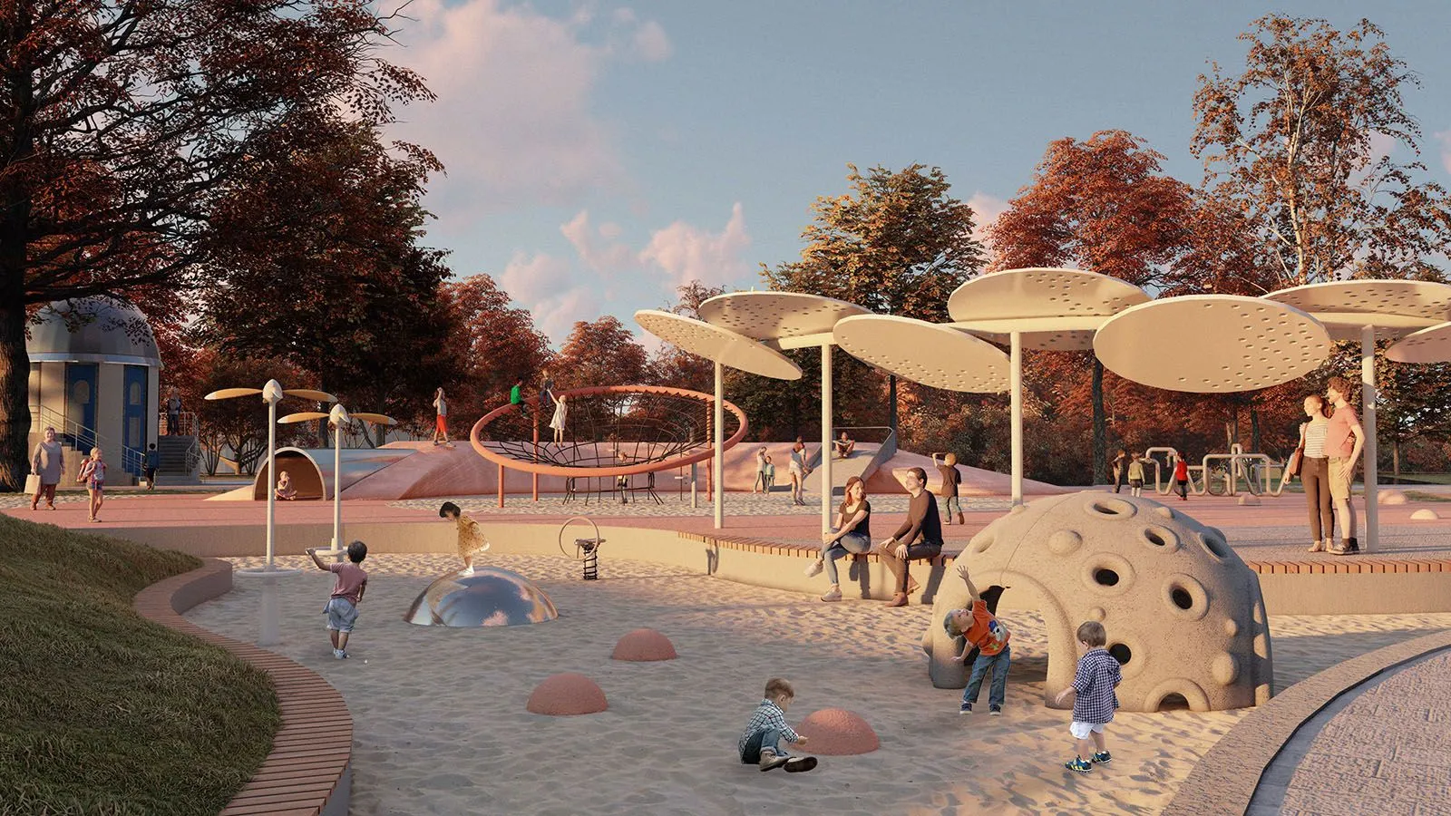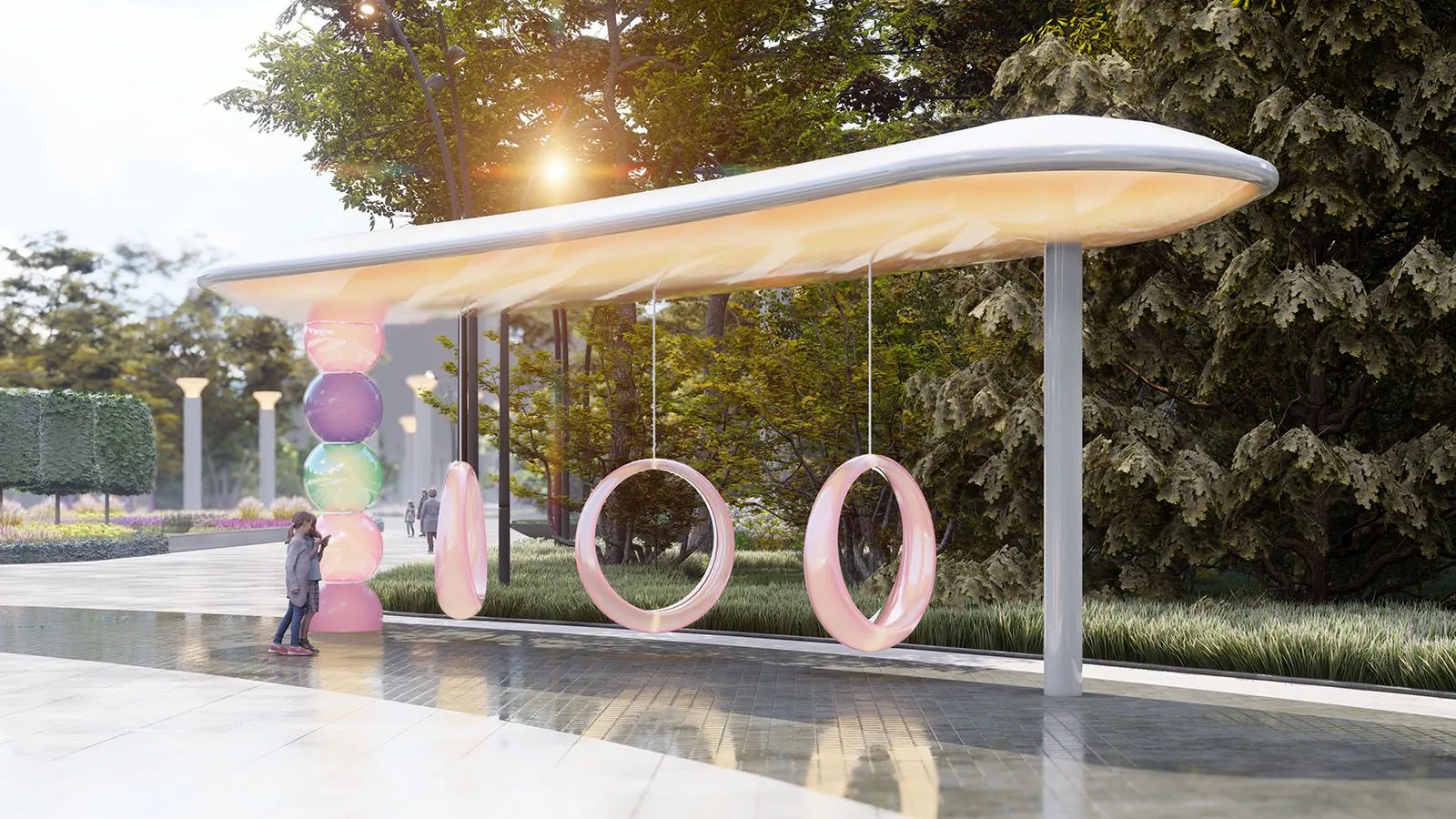 На Фонтанной площади обустроят несколько навесов, под которыми разместятся павильоны торговли, стульчики, лавочки и столики, качели. На аллее между проездом Сокольнического Круга и Фонтанной площадью установят мобильные кашпо с лавочками. Аллея арок тоже изменится: здесь появятся новые конструкции с подсветкой, а под ними — длинные изогнутые скамейки.